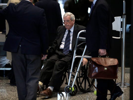 Hastert, who entered court in a wheelchair and needed help standing to address the judge, admitted mistreating some athletes when he was a high school wrestling coach in Illinois before he began his political career.